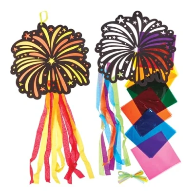 Baker Ross FN304 Fireworks Stained Glass Decoration Kits Pack of 5, Bonfire Night Decorations Arts and Crafts for Kids