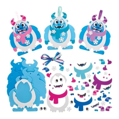 Baker Ross FN313 Yeti Monster Mix and Match Decoration Kits Pack of 8, Christmas Arts Crafts for Kids, Decorations