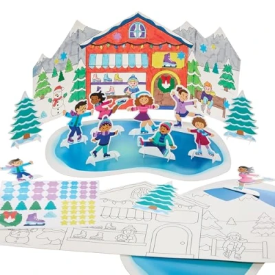 Baker Ross FN333 Winter Ice Skating Colour in 3D Scene Kits Pack of 2, Christmas Arts and Crafts, Entertainment for Kids