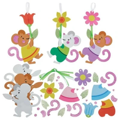 Baker Ross FN377 Springtime Mice Mix & Match Decoration Kits Pack of 6, Spring Arts and Crafts for Kids