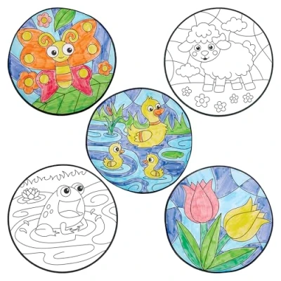 Springtime Window Decorations: Colour-in and then decorate your windows with these delightful springtime animals, bugs and flowers. Light will shine through the designs to create a stained-glass effect! Colouring Craft Kit for Kids: The pre-drawn outlines allow boys and girls of all abilities to colour-in decorations easily, and stickers can be crafted at home, in school or at clubs. These window decorations are great for decorating kids parties Springtime Decorations: Kids can colour-in decorations with Baker Ross pencils or fibre tip pens (not included). Kids can then apply the decorations directly onto windows, and watch the sun bring the images to life Included in the Pack: This pack contains 20 decorations in 10 assorted Springtime designs - including Butterfly, Daffodils, Tulips, Ducks, Bee, Lamb, Caterpillar, Crocus, Frogs & Bluebells. 15cm diameter. Made by Experts: Baker Ross has been designing and providing the very best art and craft supplies, and toys to schools, groups and parents for over 50 years. All products conform to General Product Safety Regulations, and state age recommendation where applicable.