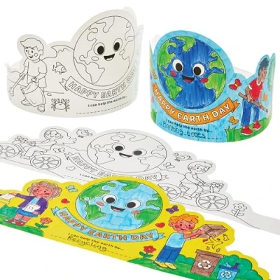 Baker Ross FN390 Earth Day Colour in Card Crowns Pack of 8, Arts and Crafts for Kids