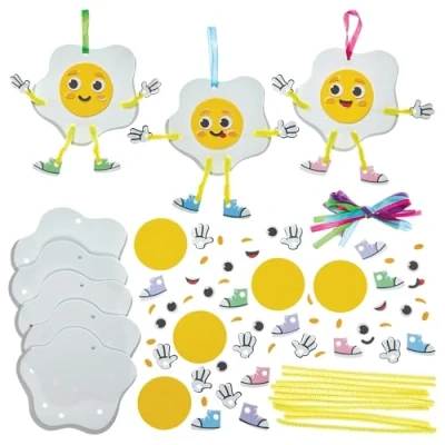 Hanging Decoration: This multipack of fried egg decorations is an entertaining craft activity for creative kids. These all-in-one kits have all the pieces kids need to make their own eggs, that are perfect for decorating parties and celebrations Kids Craft Kit: Boys and girls of all abilities will be able to complete these simple to make foam decorations. Kids can peel and stick the self-adhesive foam pieces to create adorable decorations Foam Craft Decoration: These colourful decorations are mess free and require no glue. Finish decorations by attaching the handy hanging ribbon supplied to display decorations at parties Included in the Pack: This pack contains 8 kits in 8 assorted designs. Each kit includes foam template, foam pieces, pipe cleaners & hanging ribbon. Decoration height 13cm. Instructions included. No glue required. Age 6+ Made by Experts: Baker Ross has been designing and providing the very best art and craft supplies, and toys to schools, groups and parents for over 50 years. All products conform to General Product Safety Regulations, and state age recommendation where applicable.