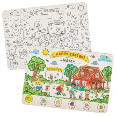 Baker Ross FN398 Easter Egg Hunt Colour in Placemats Pack of 8, Colouring Decorations for Kids