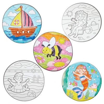Summer Window Decorations: Colour-in and then decorate your windows with these fun summery decorations. Light will shine through the designs to create stained-glass effect boats, sandcastles and sunbather more! Colouring Craft Kit for Kids: The pre-drawn outlines allow boys and girls of all abilities to colour-in decorations easily. These decorations can be crafted at home, in school or at clubs. Summer Decorations: Kids can colour-in decorations with Baker Ross pencils or fibre tip pens (not included). Kids can then stick designs directly onto windows, and watch the sun bring the colourful images to life Included in the Pack: This pack contains 20 decorations, in 10 assorted Summertime designs - Sandcastle, Boat, Crab, Swimming, Turtle, Pirate, Mermaid, Sunbather, Flamingo & Bee. 15cm diameter Made by Experts: Baker Ross has been designing and providing the very best art and craft supplies, and toys to schools, groups and parents for over 50 years. All products conform to General Product Safety Regulations, and state age recommendation where applicable.