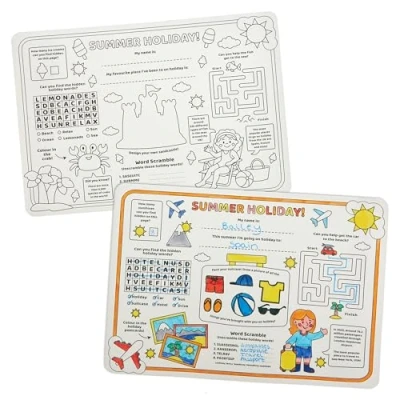 Summer Holiday Activity Sheets: A collection of fun, seasonal activity sheets designed for colouring and completing—perfect for keeping kids engaged during the summer break. Perfect for On-the-Go Entertainment: Ideal for children to enjoy while travelling, waiting in restaurants, or during quiet time at home—keeping them entertained and focused. Simple and Creative: Use with fibre tip pens or pencils (not included) to colour in and complete each sheet—a great way to keep young minds active and creative this summer. Included in the Pack: This pack contains 8 kits, in 2 assorted designs. Sheet size 34cm x 23.5cm Made by Experts: Baker Ross has been designing and providing the very best art and craft supplies, and toys to schools, groups and parents for over 50 years. All products conform to General Product Safety Regulations, and state age recommendation where applicable.