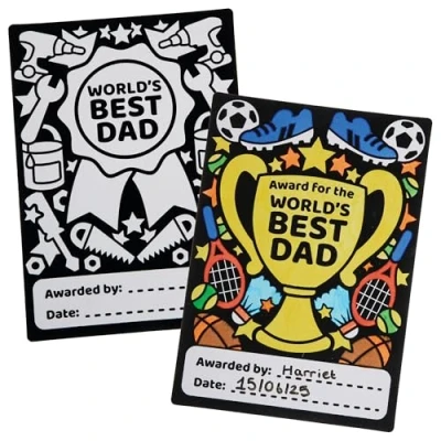 Father's Day Crafts: Kids can create their own fuzzy art Father's Day certificates that make for ideal gifts. These 'world's best Dad' certificates can be personalised by children by adding their name and the date. Colouring for Kids: This entertaining colouring activity is mess-free and simple to complete. Boys and girls of all abilities will be able to create perfect pictures every time, as the velvet outlines make it easy for kids to colour between the lines. Arts and Crafts: Kids can colour certificates with Baker Ross fibre tip pens, crayons or pencils (not included). Certificates are ideal for pairing with Baker Ross Father's Day cards and crafts (not included). Included in the Pack: This pack contains 6 sheets, Card sheets with black velvet outlines, in 3 assorted Father's Day designs. 29.5cm x 21cm Made by Experts: Baker Ross has been designing and providing the very best art and craft supplies, and toys to schools, groups and parents for over 50 years. All products conform to General Product Safety Regulations, and state age recommendation where applicable.