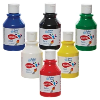 Acrylic Paint Set for Kids: This set of water-based washable paint is perfect for children to paint on paper and card. Colours are pre-mixed, so kids can start painting straight away Arts and Crafts for Kids: Creative boys and girls will enjoy painting their own designs and patterns with this paint at home, in school and in classrooms. These paints are perfect messy play and painting craft projects Paint Bottles: Waterproof and flexible on most surfaces - wood, canvas, card and more! Has a bright shiny gloss finish Included in the Pack: This pack contains 6 paints, in 6 colours - Red, Green, Yellow, Blue, Black & White. Comes in handy 150ml bottles Made by Experts: Baker Ross has been designing and providing the very best art and craft supplies, and toys to schools, groups and parents for over 50 years. All products conform to General Product Safety Regulations, and state age recommendation where applicable.