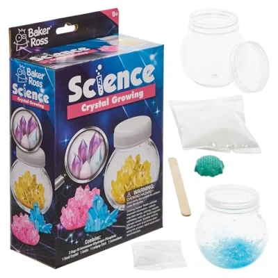 Crystal Growing Kit: Budding young scientists can grow their own crystals and explore the fascinating world of crystal formation. Educational Fun: A great way for children to learn about science, crystal growth, and the natural world in an engaging and hands-on way. Ideal for Experimenting: Perfect for sparking curiosity and encouraging scientific exploration at home or in the classroom. Included in the Pack: This pack contains 1 kit, each kit includes 2 x bags of crystalline powder, 1 x crystal, wooden stick, jar & instructions, in Seed crystal colour is random. Jar size 12cm. Instructions included. Takes approximately 10-15 days to fully grow. For display purposes only. Adult supervision recommended. Age 8+ Made by Experts: Baker Ross has been designing and providing the very best art and craft supplies, and toys to schools, groups and parents for over 50 years. All products conform to General Product Safety Regulations, and state age recommendation where applicable.