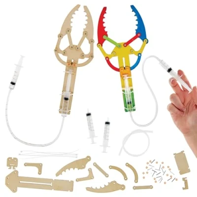 Science Kits for Kids: Make your own hydraulic claw! Discover the amazing science behind Pascal's Law with this fun wooden kit. Simply assemble the kit with the pieces included in the kit Water is all you need to power this kit Complete Set: Each kit includes wooden board, cable ties, hose, syringes, axles and bushing. Use with Baker Ross wood glue (not included) Educational and Entertaining: Not only does this kit offer a fun and creative crafting experience, but it also introduces children to STEM concepts through hands-on construction and experimentation with mechanics and physics. Ideal for classrooms, homeschooling, or simply as a fun project at home. Included in the Pack: This pack contains 1 kit, in 1 design. Finished size 15cm. Instructions included. Glue may be required Age 8+ Made by Experts: Baker Ross has been designing and providing the very best art and craft supplies, and toys to schools, groups and parents for over 50 years. All products conform to General Product Safety Regulations, and state age recommendation where applicable.