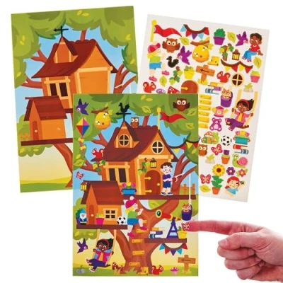 Baker Ross FN546 Treehouse Sticker Scenes Pack of 4, Make your Own for Kids, Reusable Stickers