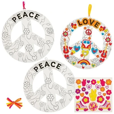 Baker Ross FN571 Peace Sign Colour in Sticker Wreath Kits Pack of 6, Foam Arts and Crafts for Kids