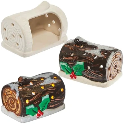 Baker Ross FN616 Yule Log Ceramic Tealight Holders Pack of 2, Christmas Decorative Perfect for Adding Warmth and Charm to Winter Celebrations
