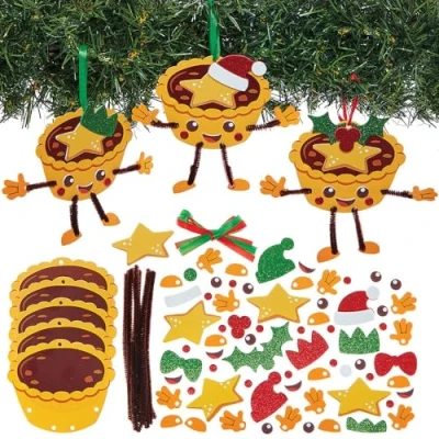 Mince Pie Decoration Kits: Create cute mince pie decorations perfect for hanging on your Christmas tree or displaying in classrooms to add festive cheer. Fun Holiday Craft: A delightful hands-on activity for children to enjoy making personalized decorations during the holiday season. Easy to Assemble: Simply arrange and stick the foam pieces, use the pipe cleaners for added detail, and attach the hanging ribbon—no glue required for a quick, mess-free craft. Included in the pack: This pack contains 8 Kits. Each kit includes template, foam pieces, pipe cleaners & hanging ribbon. 8 assorted designs. Decoration height 12.5cm. Instructions included. No glue required. Age 6+ Made by Experts: Baker Ross has been designing and providing the very best art and craft supplies, and toys to schools, groups and parents for over 50 years. All products conform to General Product Safety Regulations, and state age recommendation where applicable.