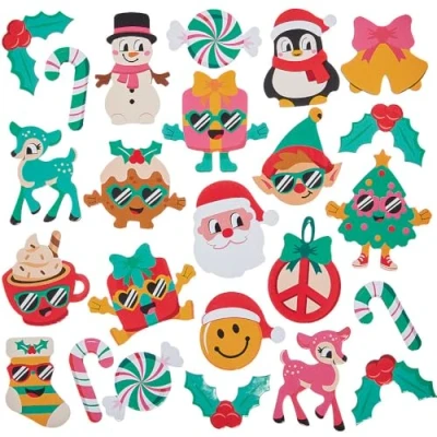 Groovy Christmas Foam Stickers: Brighten up cards, crafts, and decorations with these fun and colourful groovy Christmas foam stickers featuring designs like Santa, elves, reindeer, sweets, baubles, and more. Perfect for Creative Projects: Ideal for kids and crafters looking to add a festive and playful touch to holiday creations and collages. Easy to Use: These self-adhesive stickers peel off easily for quick, mess-free decorating on a variety of surfaces, including blanks and craft shapes. Included in the pack: This pack contains 120 stickers in 20 assorted designs - including Santa, Elf, Reindeer, Sweets, Baubles, Bells, Penguin, Christmas Pudding and more. Sticker size 30mm-50mm. Made by Experts: Baker Ross has been designing and providing the very best art and craft supplies, and toys to schools, groups and parents for over 50 years. All products conform to General Product Safety Regulations, and state age recommendation where applicable.