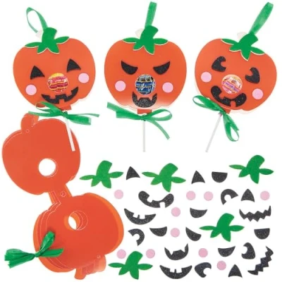 Pumpkin Lollipop Holder Kits: Create festive pumpkin-shaped lollipop holders by assembling the templates, adding self-adhesive foam decorations, and placing a lollipop inside for a personalised Halloween treat. Fun Halloween Craft: Perfect for kids to make and gift charming and delightful pumpkin holders that add a special touch to Halloween celebrations. Easy to Assemble: Simply stick the foam decorations onto the pumpkin template, add the ribbon, and insert a lollipop—no glue required for a quick, mess-free project. Included in the pack: This pack contains 10 Kits. Each kit includes pumpkin template, self-adhesive foam decorations & ribbon. 5 assorted designs. Height 9cm. Instructions included. No glue required Made by Experts: Baker Ross has been designing and providing the very best art and craft supplies, and toys to schools, groups and parents for over 50 years. All products conform to General Product Safety Regulations, and state age recommendation where applicable.