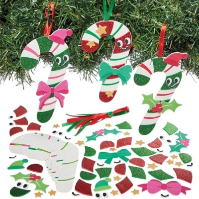 Baker Ross FN675 Candy Cane Mix & Match Decoration Kits Pack of 8, Christmas Craft Sets for Festive Decorations