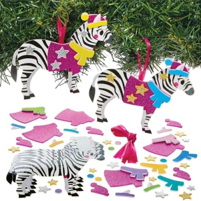 Christmas Zebra Mix & Match Decoration Kits: Mix and match foam pieces to create eight fun and festive Christmas zebra decorations, perfect for hanging in classrooms or on the tree. Creative Holiday Craft: A delightful hands-on activity that encourages creativity and adds a playful touch to seasonal décor. Easy to Assemble: Simply stick the self-adhesive foam decorations onto the templates, add the hanging ribbon, and your zebra decorations are ready—no glue required. Included in the pack: This pack contains 8 Kits. Each kit includes template, self-adhesive foam decorations and ribbon for hanging. 8 assorted designs. Decoration height 12.5cm. Instructions included. No glue required Made by Experts: Baker Ross has been designing and providing the very best art and craft supplies, and toys to schools, groups and parents for over 50 years. All products conform to General Product Safety Regulations, and state age recommendation where applicable.