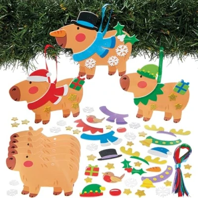 Christmas Capybara Decoration Kits: These festive kits include a variety of mix-and-match foam pieces that allow children to create 8 adorable and unique capybara-themed Christmas decorations. Each decoration can be customized, encouraging creativity and imaginative play. Christmas Capybara Decoration Kits: These festive kits include a variety of mix-and-match foam pieces that allow children to create 8 adorable and unique capybara-themed Christmas decorations. Each decoration can be customized, encouraging creativity and imaginative play. Fun and Creative Activity: Designed specifically for children, these kits provide an engaging, hands-on crafting experience. The easy-to-assemble foam pieces promote fine motor skills and inspire holiday spirit, making them perfect for festive art projects, classroom activities, or holiday parties. Included in the pack: This pack contains 8 Kits. Each kit includes template, self-adhesive foam decorations and ribbon for hanging. 8 assorted designs. Decoration height 12cm. Instructions included. No glue required Made by Experts: Baker Ross has been designing and providing the very best art and craft supplies, and toys to schools, groups and parents for over 50 years. All products conform to General Product Safety Regulations, and state age recommendation where applicable.