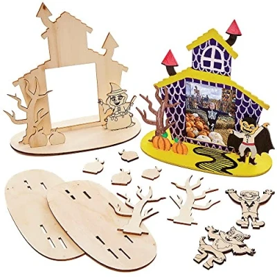 Baker Ross FX187 Haunted House Wooden Photo Frame Kits Pack of 4, Kids Halloween Decoration Craft Kit, Wood Arts and Crafts