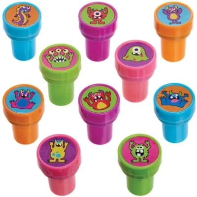 Baker Ross FX206 Monster Bunch self inking Stampers Pack of 10, Halloween Party Bag Filler, Kids Arts and Crafts Stamps