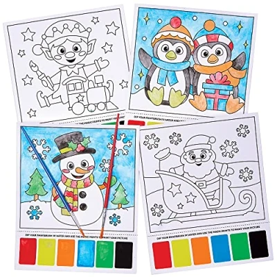 Baker Ross FX381 Christmas Magic Painting Pictures Pack of 10, Watercolour for Kids, Kids Colouring