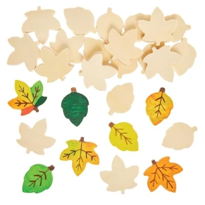 Baker Ross FX727 Leaf Wooden Painting Stones Pack of 30, Blank to Paint and Decorate