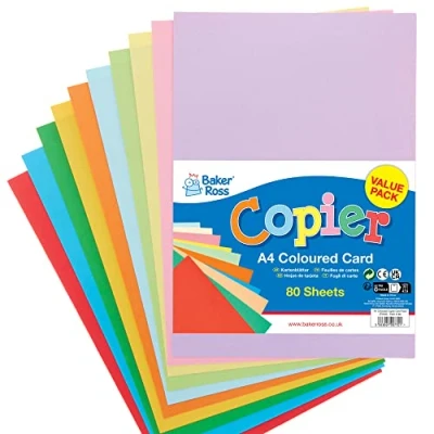 Baker Ross FX840 A4 Coloured Copier Card Pack of 80, Classroom Craft Essential, Arts and Crafts for Kids, School Supplies