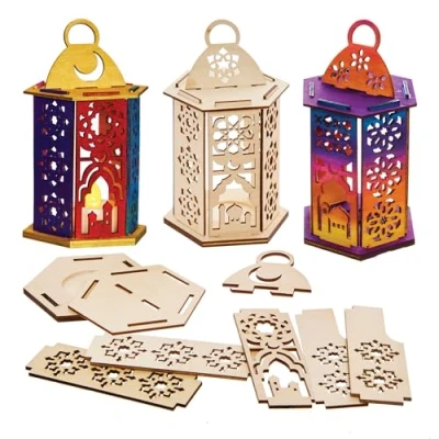 Baker Ross FX935 Ramadan Wooden Lantern Kits Pack of 3, Religious Education Arts and Crafts for Kids