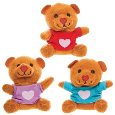 Baker Ross FX957 Love Heart Teddy Bears Pack of 4, Valentines Day Party Bag Fillers for Kids