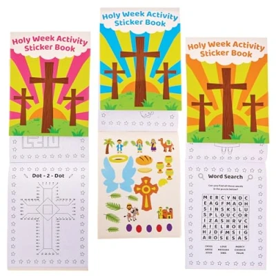 Baker Ross FX977 Holy Week Sticker Activity Books Pack of 8, Christian for Kids