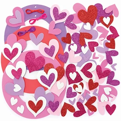 Baker Ross Heart Foam Pack of 3, Valentine's Wreath Craft Kit for Kids (FC448), Assorted
