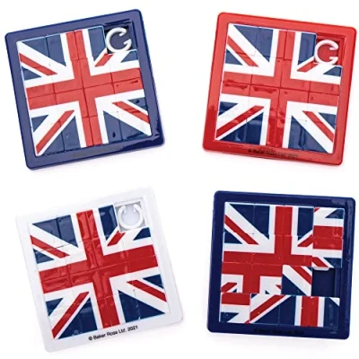 Baker Ross PJ136 Union Jack Sliding Puzzles for VJ Day 80th Anniversary Pack of 6, British Party Bag Fillers