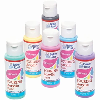 KIDS PAINT: Kids will love creating incredible fluid art designs with this pouring acrylic paint set. Paints are pre-mixed with correct ratio of pouring medium and ready to pour! BE INSPIRED BY UNICORNS: Creative kids will enjoy pouring the paints onto canvas, wood, stone, acrylic, card and much more! Each set contains 6 magical unicorn colours. CRAFTS FOR KIDS: Especially designed for kids craft activities, these paints are suitable for children ages 3 and over and can be used for parties, in the classroom or group craft activities. Included in the Pack: 6 x Pouring Acrylic Paint in Unicorn Colours. In 6 unicorn colours. 60ml per colour. Made by Experts: Baker Ross has been designing and providing art and craft supplies, and toys to schools, groups and parents for over 40 years. All products conform to General Product Safety Regulations, and state age recommendation where applicable, Manufacturer: Baker Ross