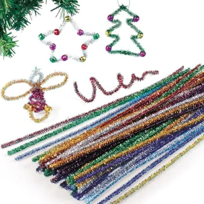 Baker Ross Tinsel Pipe Cleaners Value Pack — Creative Art Supplies for Kids, Crafts and Decorations (Pack of 72)