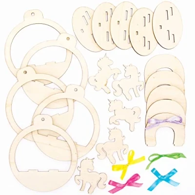 WOODEN CRAFTS FOR KIDS: If you're looking for a wooden craft project for kids, you've found it. These wooden bauble craft kits are simple to assemble and kids will love decorating their own unicorn wooden baubles with their own paints or pens, then hang for all to see. UNICORN DECORATION CRAFT: Creative kids will love making their own unicorn craft decorations and will enjoy the ease of the kit, with the included easy to assemble wooden pieces. Each kit includes wooden pieces to slot together and coloured ribbon for hanging. PERFECT FOR KIDS CRAFTS: Especially designed for kids craft activities, this unicorn wooden bauble kit is suitable for children ages 3 and over and can be used for parties, in the classroom, group craft activities or family-fun time at Easter. Included in the Pack: 5 x Unicorn Wooden Bauble Kits. Includes wooden pieces and hanging ribbon. In 2 designs. Size 12cm (4.7 inches) Made by Experts: Baker Ross has been designing and providing art and craft supplies, and toys to schools, groups and parents for over 40 years. All products conform to General Product Safety Regulations, and state age recommendation where applicable