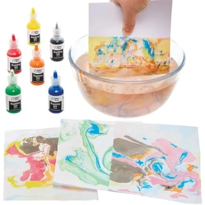 Baker Ross VC267 Marbling Inks Bumper Pack of 6, Water Arts and Crafts, Pattern Making for Kids