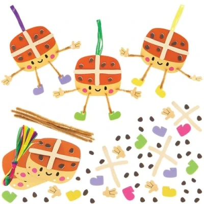 Baker Ross WA126 Hot Cross Bun Mix & Match Decoration Kits Pack of 8, Fun Foam Craft with Pipe Cleaners for Easter