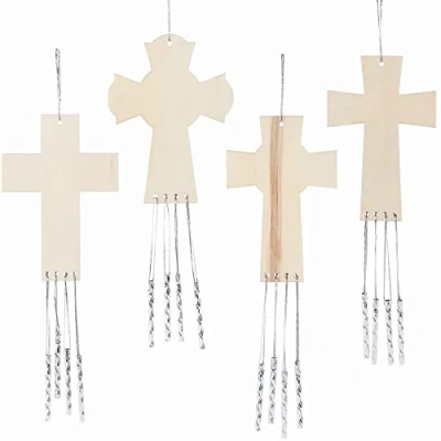 Baker Ross wooden cross wind chimes pack of 4, musical with metal bells craft set for children to colour and decorate (FC536)