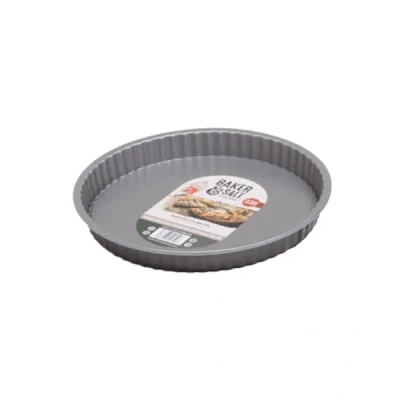 The Baker & Salt Non-Stick Quiche/Flan Tin is part of the Baker & Salt Non-Stick collection - a range of bakeware that boasts the following benefits: Double non-stick coating for excellent release.Both freezer safe and dishwasher safe.Oven safe up to 230°C.This non-stick quiche/flan tin has a loose bottom and its internal measurements are: 23.5cm x 23.5cm x 3cm.Perfect for baking your very own homemade quiche or flan.Made in Britain.