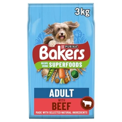 Bakers Adult Dry Dog Food Beef and Veg 3kg, Pack of 4