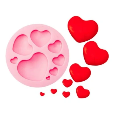 Silicone Mould - Hearts This easy to use mould creates exquisite sugarcraft hearts, producing stunning cakes and cupcakes in no time at all! Easy step by step instructions to follow. This silicone mould will produce eight gorgeous hearts at a time. Super easy to clean and reuse time and time again.