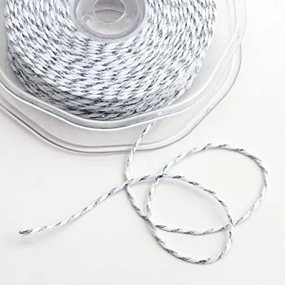 Bakers Twine 2mm x 50 Metres White with Metallic Silver Thread