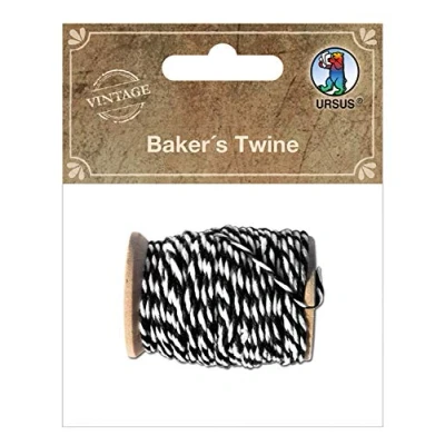 Bakers Twine Heavy Duty Cotton Yarn on a Wooden Spool 10 Metres in Black/White Ideal for variety of craft projects