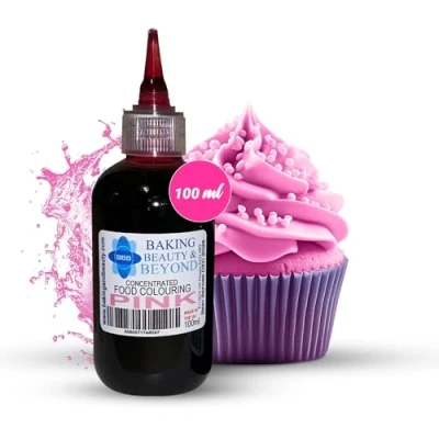 Baking Beauty and Beyond Concentrated Liquid Food Colouring for Vibrant, Super Strength Decorating Colour Making Confectionery, Cake, Ice Cream DIY Crafts (100ml, Pink)