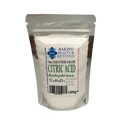 Baking Beauty and Beyond Food Grade Anhydrous Citric Acid Non GMO, Premium Quality Perfect for BathBomb, Wine making, cleaning, descaling, additive, cosmetics 100g
