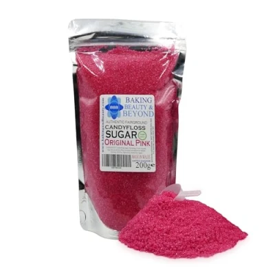 Baking Beauty and Beyond Premium Floss Sugar for Cotton Candy Flossing with Natural Ingredients, Perfect Every Occasion, Bulk 200g Original Pink Flavour