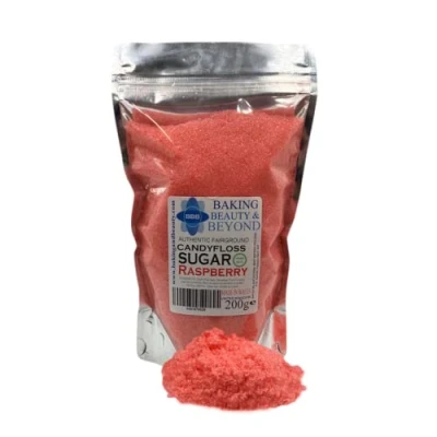 Baking Beauty and Beyond Premium Floss Sugar for Cotton Candy Flossing with Natural Ingredients, Perfect Every Occasion, Bulk 200g Raspberry Flavour