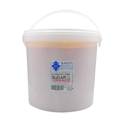 Baking Beauty and Beyond Premium Floss Sugar for Cotton Candy Flossing with Natural Ingredients, Perfect Every Occasion, Bulk 5kg Orange Flavour