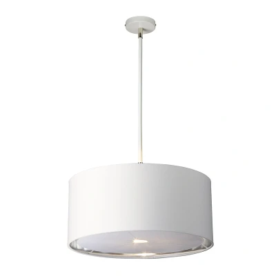 This is a large collection which offers different style light fittings, allowing you to create a complete lighting theme throughout the room. This fitting has a contemporary white finish with polished nickel elements which add a retro style to the look of this collection, making it easy to place in both modern and traditional environments. All fittings are compatible with LED lamps. Each shade has a silver metallic lining, and includes an acrylic diffuser. This fitting is supplied with 2 x 30cm rods and 2 x 15cm rods.